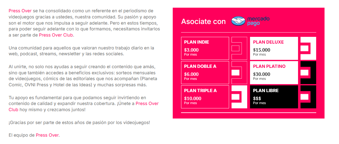 Y si podés, como siempre, te pedimos que te sumes a Press Over Club, la suscripción que este año nos dejó seguir laburando en lo que tanto amamos y en lo que creemos que es tan importante para el sector.
